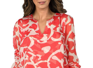 Alfani Women's Blouse Small Tunic Printed Tulip Sleeve Burgundy Size S