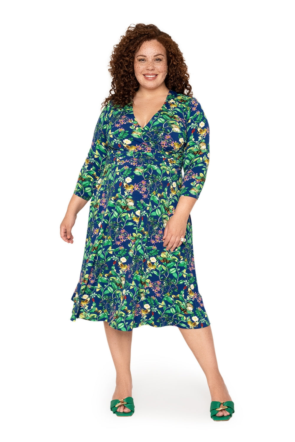 Leota's Curve Women Amiya 3/4 Sleeve Midi Butterfly Meadow Navy