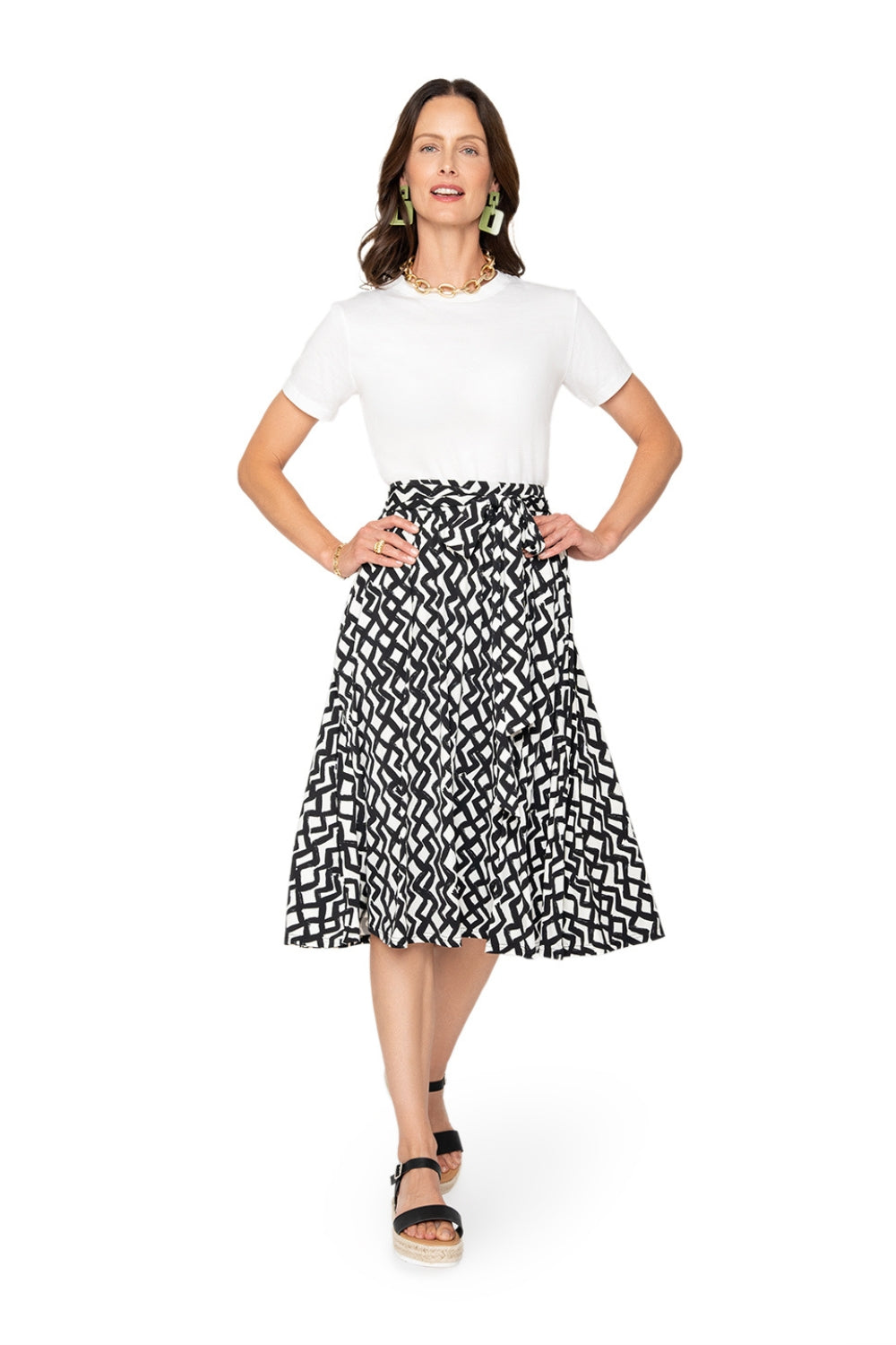 Leota's Curve Women Mindy Skirt Zig Zag Black White