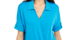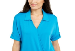 Alfani Women's Collared Knit Top Wild Turqoise Blue Size Petite X-Small