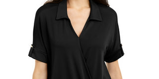 Alfani Women's Collared Knit Top Black Size Petite XL