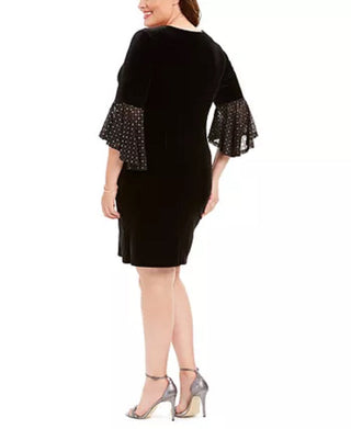 Connected Women's Plus Size Velvet Bell-Sleeve Dress Black Size 20W