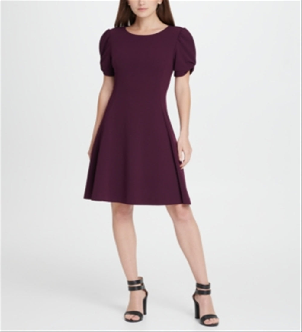 DKNY Women's Knot Puff Sleeve Fit Flare Dress Purple Size 10