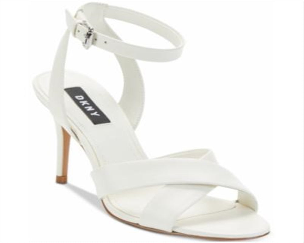 DKNY Women's Leather Open Toe Ankle Strap Classic Pumps White Size 7.5