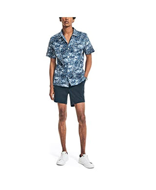 Nautica Men's Stretch Cotton Floral Print Short Sleeve Shirt Blue Size Large