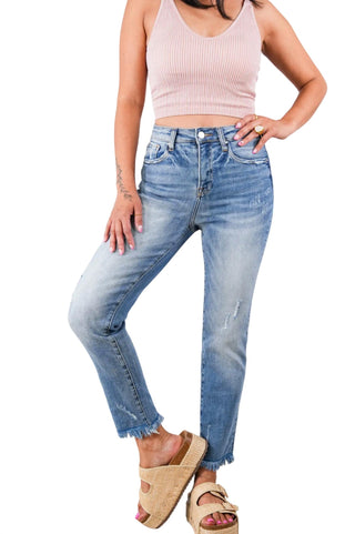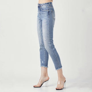 Risen - Jazlyn High Rise Tummy Control Raw Hem w/Side Slit Stright