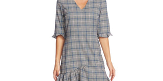 CeCe Women's Windsor Check Ruffle Hem Dress Black Gray Size 12