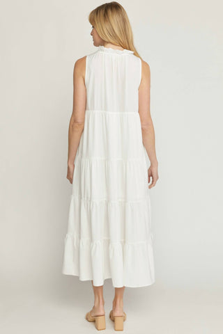 Entro - Faux Wrap Short Puff Sleeve Ruffle Detail Midi Dress