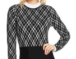 Cece Women’s Ruffled Collar Jacquard Fit & Flare Sweater Dress Black Size Large