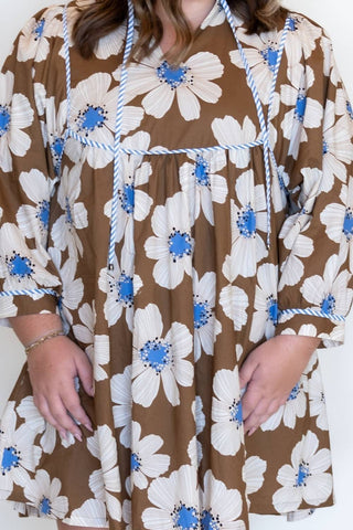 Entro - Floral Babydoll With Contrast Trim And Mid Sleeves Dress