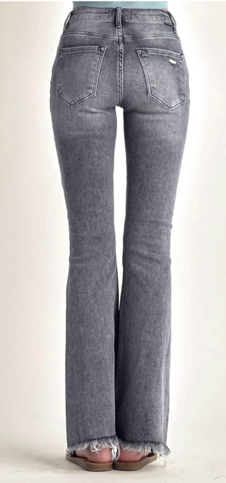 Risen - Mid Rise Distressed Ankle Flare Jeans