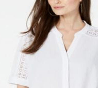 Alfani Women's Lace Inset Tie Front Top White Size Petite S