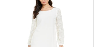 Alfani Women's Long Sleeve Scoop Neck Short Sheath Evening Dress White Size X-Large