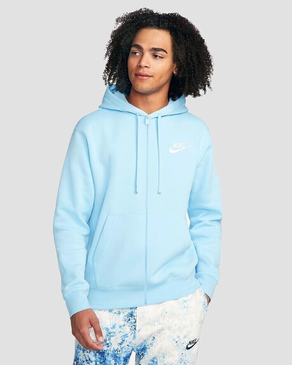 Nike Men's Club Zip Up Logo Hoodie Blue Size X-Large