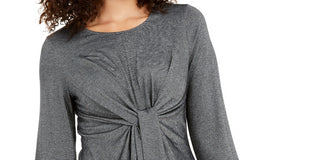 Alfani Women's Metallic Twist-Front Top Charcoal Size 2 Extra Large