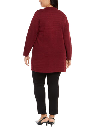Alfani Women's Mod Shimmer Metallic Striped Cardigan Top Berry Jam Size 0X