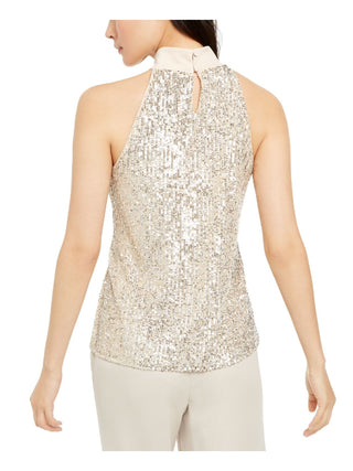 Alfani Women's Mock-Neck Sequined Blouse Beige Size XX Large