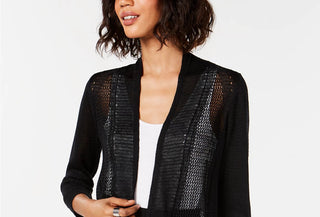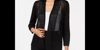 Alfani Women's Petite Mixed-Stitch Open-Front Cardigan Black Size Medium