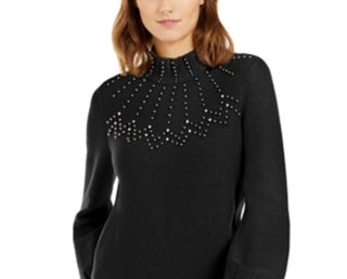 Alfani Women's Petite Mock-Neck Embellished Sweater Black Size Medium