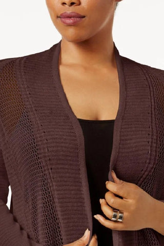Alfani Women's Petite Mixed-Stitch Open-Front Cardigan BrownSize PL