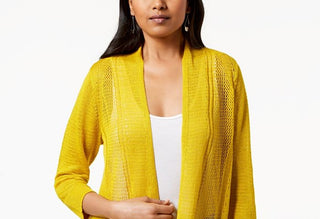 Alfani Women's Petite Mixed-Stitch Open-Front Cardigan Yellow Size PXL