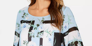 Alfani Women's Petite Printed Angel-Sleeve Blouse Navy Size Petite X-Large