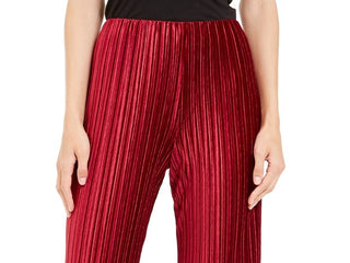 Alfani Women's Petite Pleated Velvet Pants Red Size Medium