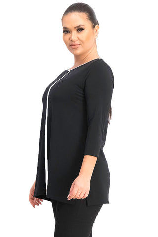 Alfani Women's Petite Piped Tunic Black Size Medium