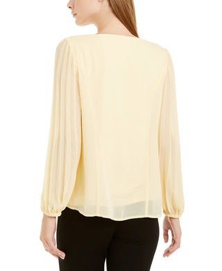 Alfani Women's Petite Pleated-Sleeve Top Yellow Size Petite