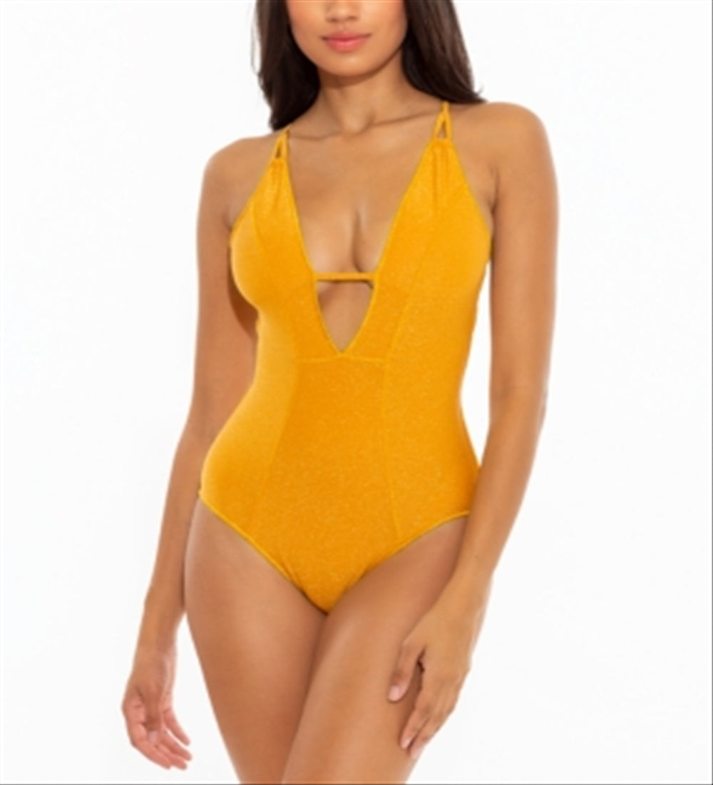 Becca Women's Madison Plunge One Piece Swimsuit Yellow Size Small