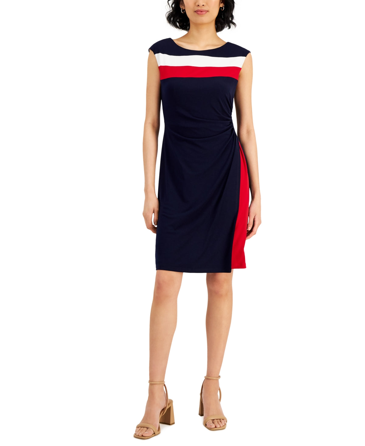 Connected Women's Dot Print Side Tab Sheath Dress Blue Size 12Petite