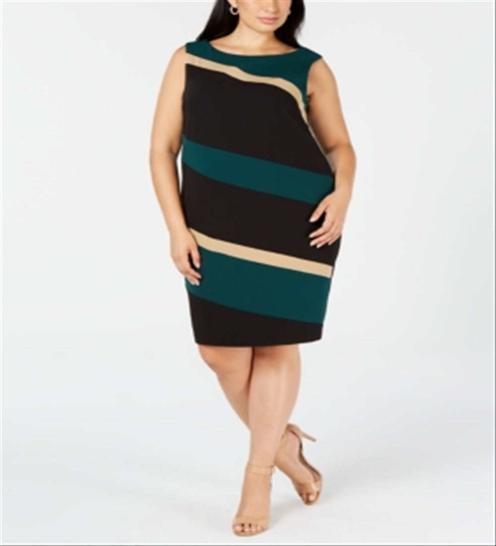 Connected Women's Dot Print Side Tab Sheath Dress Black Size 22W