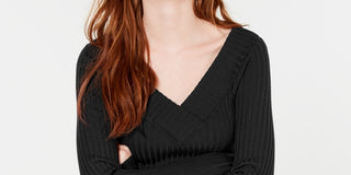 Freshman Juniors' V-Neck Ribbed Sweater Gray Size Medium