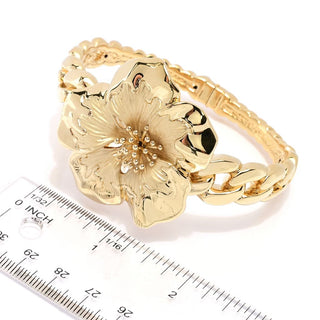Graziella 23K Gold Plated Electroform Hibiscus Curb Link Cuff Bracelet