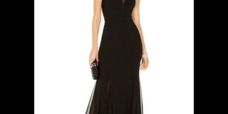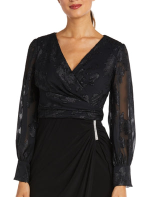 Nightway Women's Jacquard Faux Wrap Gown Black Size 8