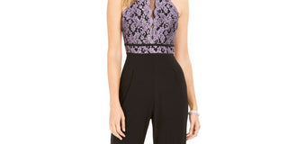 Nightway Women's Glitter-Lace Jumpsuit Purple Size 6