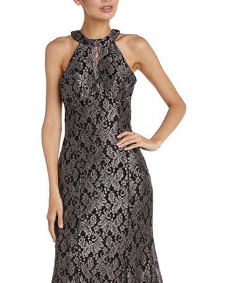 Nightway Women's Glitter Lace Keyhole Gown Black Size 12