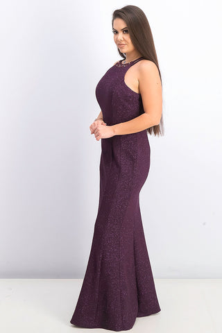 Nightway Women's Glitter Knit Gown Dark Purple Size 8