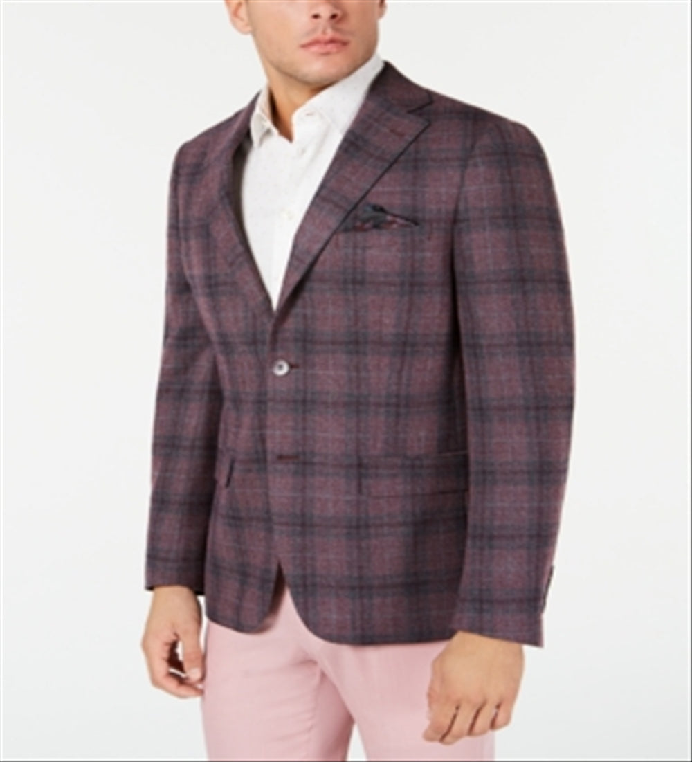 Tallia Men's Slim Fit Plaid Blazer Red Size 38
