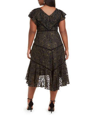 Taylor Women's Plus Flutter Sleeve Lace Dress Black Size 18W