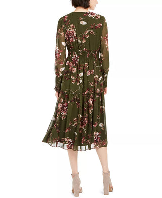 Taylor Women's Floral-Print Chiffon Midi Dress Black Size 6