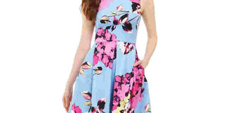 Taylor Women's Floral Scuba Fit & Flare Dress Navy Size Medium Regular