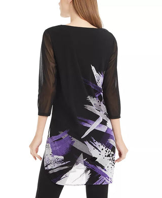 Alfani Women's Petite Printed Super Tunic Black Size Small