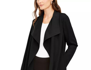 Alfani Women's Petite Wing-Collar Draped-Front Jacket Black Size Petite