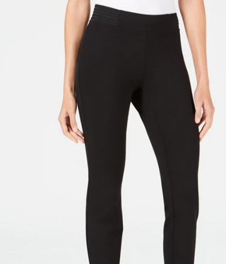 Alfani Women's Petite Wide-Waistband Exposed Elastic Skinny Pants Black Size 12 P