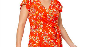 Leota Women's Monique Floral Jersey Faux Wrap Dress Orange Size 2X