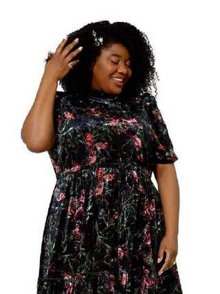 Leota Women's Miranda Floral Velvet Midi Dress Black Size 2X