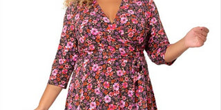 Leota Women's Perfect Floral Faux Wrap Dress Red Size 2X
