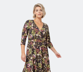 Leota Women's Perfect Faux Wrap Dress Brown Size 3X