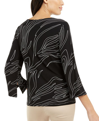 Alfani Women's Printed Asymmetrical Top Black Size Large